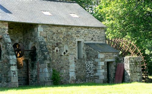1 - Pont Pol - Après avoir traversé la départementale, vous entrez sur le site de l'ancien moulin à papier de Pont Pol. Devenu moulin à tellier, lors de l'âge d'or de la culture du lin sur le territoire de Morlaix, il a conservé son matériel pour extraire la fibre.