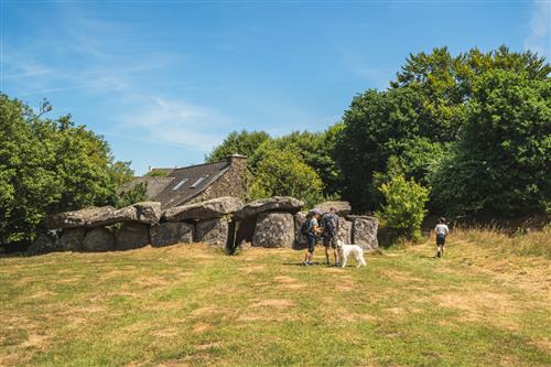 1 - Départ - Depuis l’allée couverte du Mougau, site néolithique classé, récemment acquis par le Département du Finistère, entrez dans le sentier d’interprétation de la tourbière du Mougau. Ce parcours, en partie accessible aux personnes à mobilité réduite, traverse la tourbière et dévoile ses secrets : sphaignes, rossolis, damier de la succise… Lorsque le sentier débouche sur un chemin empierré, prenez à gauche, puis grimpez à travers la lande jusqu’au chemin des crêtes.
