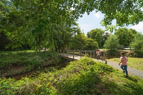 quartiers. Suivez les marquages au sol et le chemin piéton qui se calque sur l’ancien sentier de la biodiversité. La descente vers l’Elorn s’amorce. Traversez la D712. Avant de revenir à votre point de départ, longez l’ancienne briqueterie et empruntez la rue des écossais.